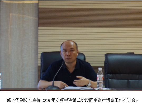 在国资处胜利完成第一阶段资产清查工作任务后,根据本次资产清单的有关文件要求,在6月20日学校特教大楼七楼第三会议室,国资处组织胜利召开了2016年安顺学院第二阶段固定资产清查工作推进会。副校长郭本华教授出席会议并讲话。学校各二级单位负责人及资产管理人员参加会议。会议由副校长郭本华教授主持。