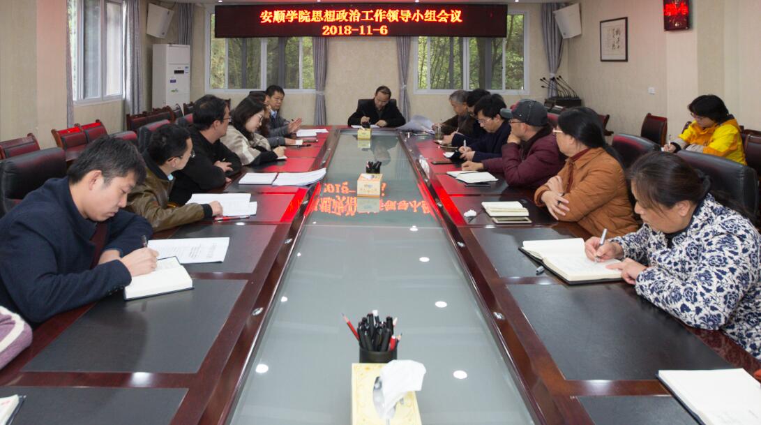 2018年11月6日,安顺学院在办公楼二楼召开思想政治工作领导小组会议,专题研究部署思想政治工作。校党委书记罗荣彬,党委副书记陶文彩,副校长令狐荣涛及迎接2018年全省高校思想政治工作检查领导小组成员参加会议。会议由令狐荣涛副校长主持。