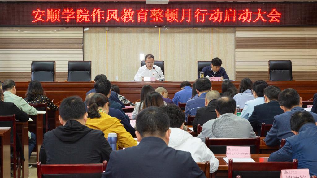 2021年4月1日,安顺学院在特教大楼七楼会议室召开作风教育整顿月行动启动大会。安顺学院党委书记罗荣彬,校长陈云坤,学校中层干部参加启动会。启动会由陈云坤主持。