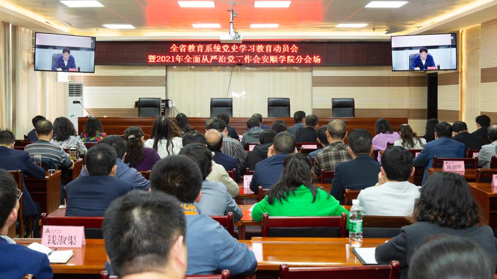 安顺学院参加全省教育系统党史学习教育动员会暨2021年全面从严治党工作会议会场