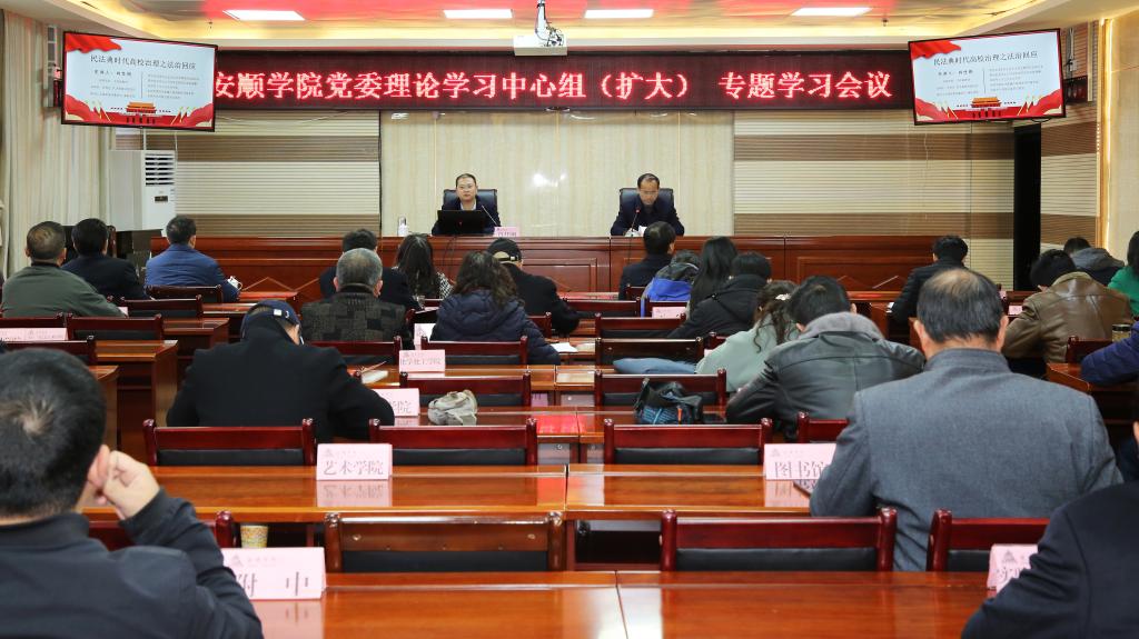 11月27日下午,安顺学院召开党委理论学习中心组(扩大)专题学习会议,邀请政法学院肖仕刚副教授作题为《民法典时代高校治理之法治回应》的专题辅导讲座。学校领导,校属各部门(单位)主要负责人,各二级党委书记、院长。会议由罗荣彬书记主持。